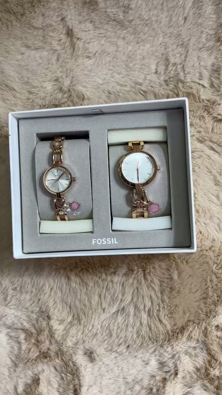 FOSSIL SET - WOMEN WATCH SET/GOLD CHAIN/WHITE DIAL